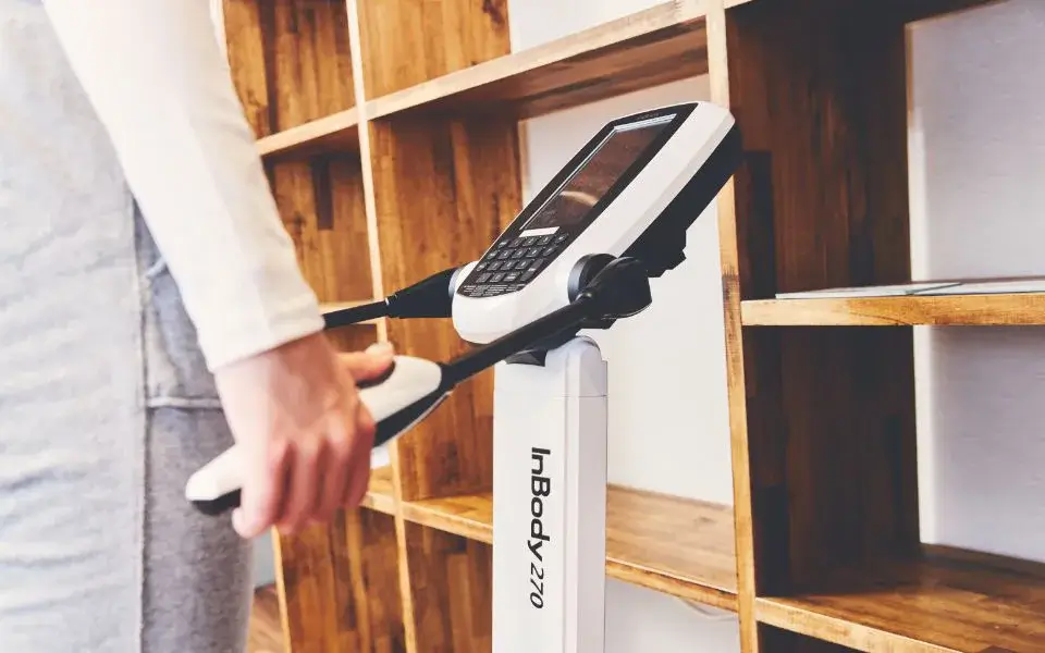 体の部位別の筋肉量・脂肪量などを正確に計測できるInbodyを店内に設置。いつでも無料でご利用いただけます。
